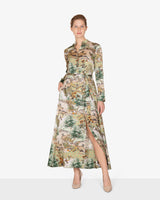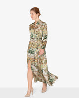 Kleid mit Knopfleiste & Motivprint aus Seide
